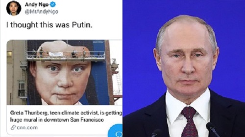 Fyziognómia švédskej školáčky sa objavila na múre jedného z domov v kalifornskom San Franciscu. Maľba však mala podľa týždenníka Newsweek nečakaný efekt medzi užívateľmi sociálnej siete Twitter, ktorí sa nedokázali zbaviť dojmu, že Greta na predmetnom grafite sa evidentne podobá na ruského prezidenta Putina. Rovnaká široká čeľusť a modré oči evokujú typické črty tváre ruského prezidenta.