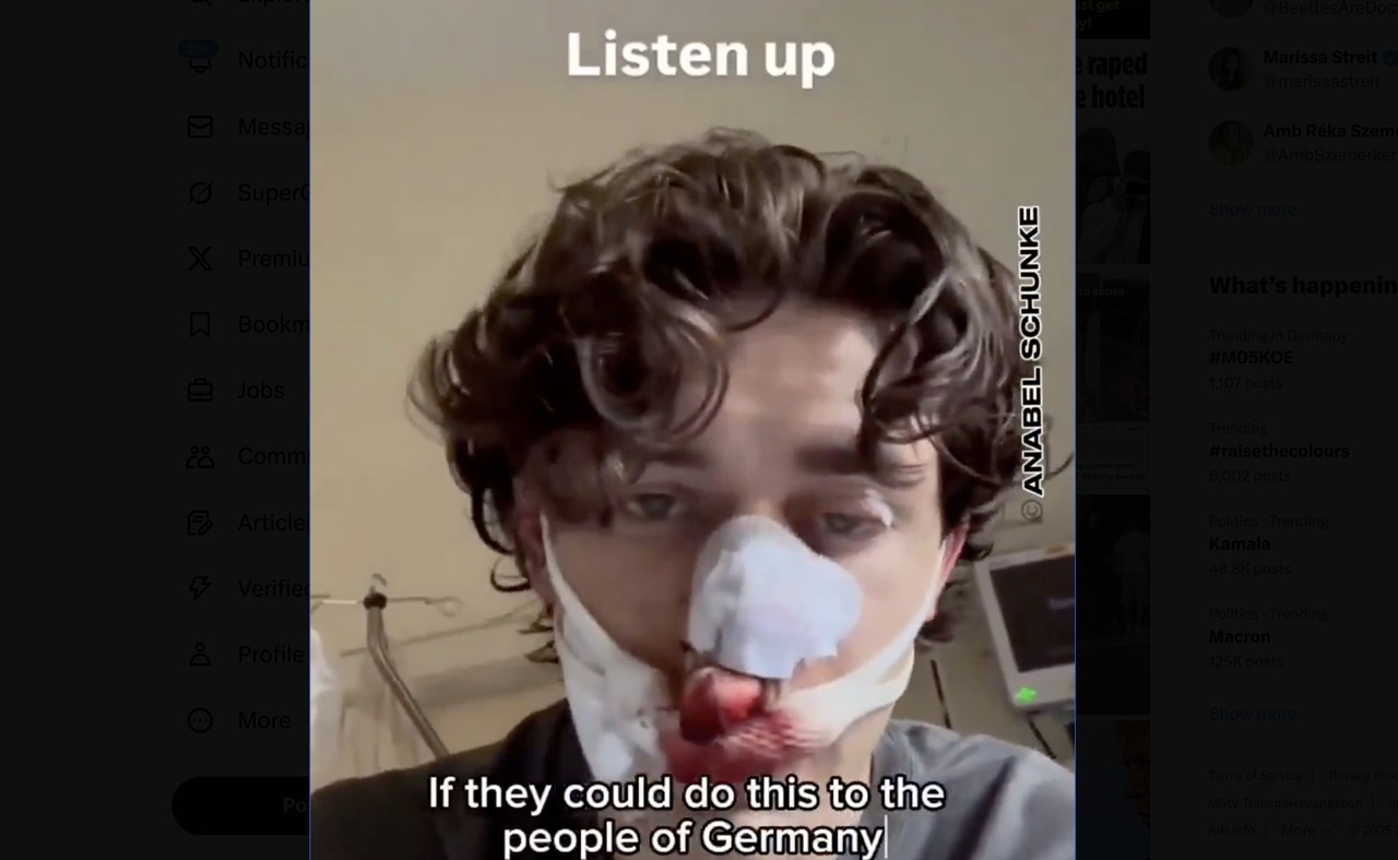 Grenell reagoval na video zverejnené obeťou útoku, ktoré už bolo cenzurované na stránke Remix News X. Keď sa Remix News pokúsi vložiť video, zobrazí sa nižšie uvedená správa, čo zvyčajne znamená, že nemecké alebo európske orgány video vystopovali a cenzurovali.
