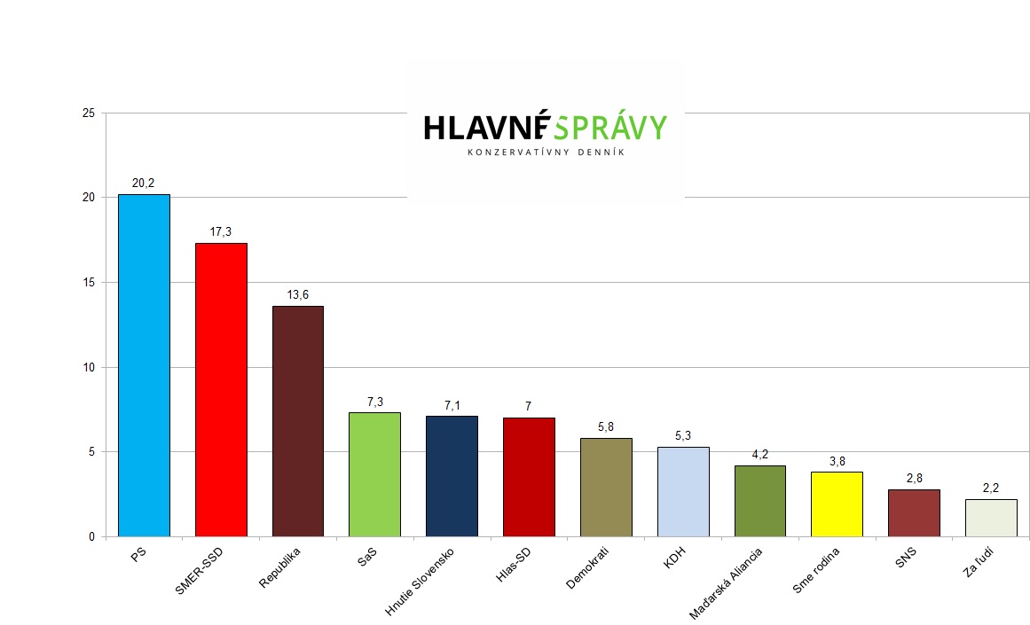 Po prepočítaní hlasov na mandáty by Progresívne Slovensko obsadilo 36 kresiel v parlamente, druhý SMER by mal o päť poslancov menej, čiže 31. Hnutie Republika by obsadilo 25 kresiel v parlamente. Strany SaS, Hlas a Hnutie Slovensko by mali zhodne po 13 poslancov. Demokrati by získali 10 mandátov a kresťanskí demokrati 9. Súčasné koaličné strany Sme a Hlas by vládu nevyskladali ani s Republikou, spoločne by mali 69 mandátov. Súčasné opozičné subjekty by boli schopné získať v parlamente väčšinu (čiže viac ako 75 mandátov), avšak bez Hnutia Slovensko by sa im to nepodarilo. S matovičovcami by mali dohromady 81 mandátov.