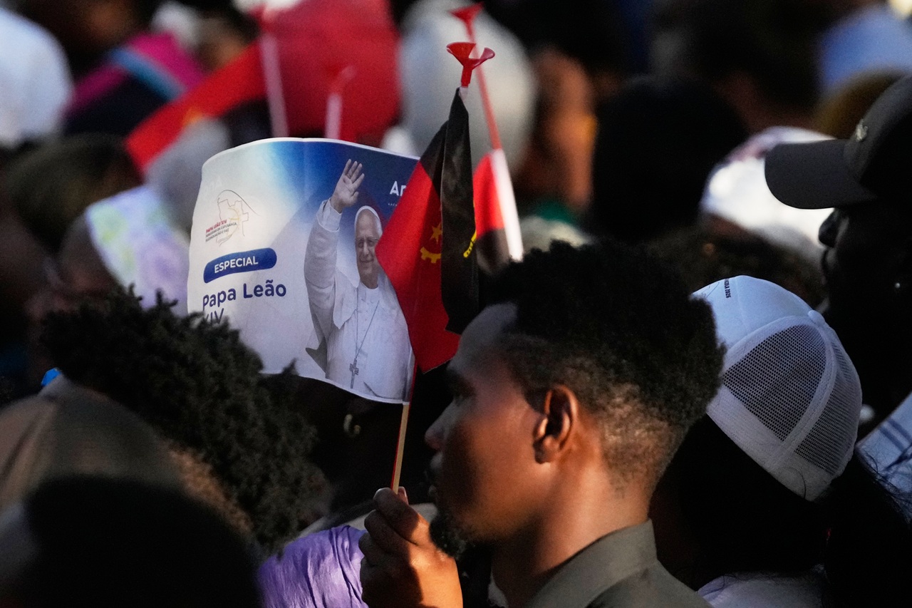 Ľudia čakajú na pápeža Leva XIV. vo farnosti Panny Márie Fatimskej pred stretnutím s biskupmi, kňazmi, zasvätenými mužmi a ženami a pastoračnými pracovníkmi v Luande v Angole v pondelok 20. apríla 2026 / Foto: SITA/AP-Themba Hadebe