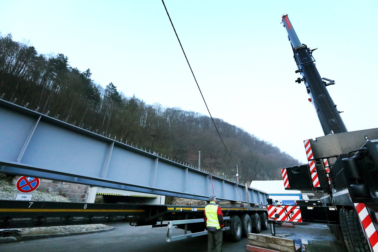S prevozom nosníkov na trase zo Šálkovej do centra mesta sa začalo o 4.30 h, ďalší transport sa realizuje dopoludnia, tretí je naplánovaný na 12.00 h. Celkovo ide o šesť nosníkov nového mosta, každý z nich má hmotnosť približne 10 ton a dĺžku 34,5 metra.