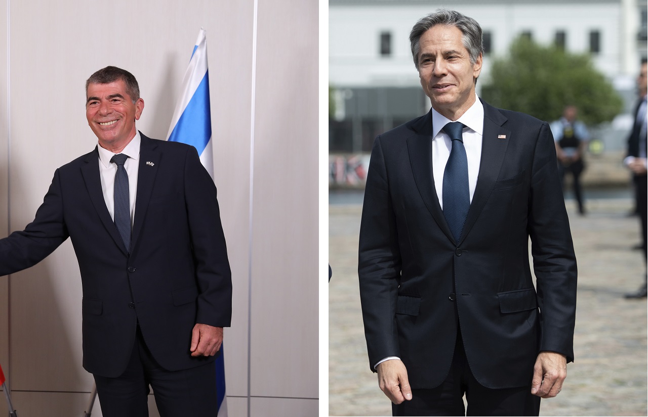 Na kombosnímke Izraelský šéf diplomacie Gabi Aškenazi (vľavo) a jeho americký kolega Antony Blinken