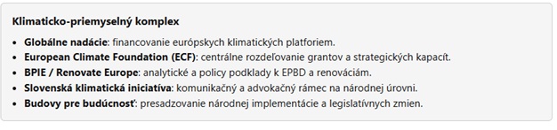 Prepojenia na európsky klimaticko-priemyselný komplex