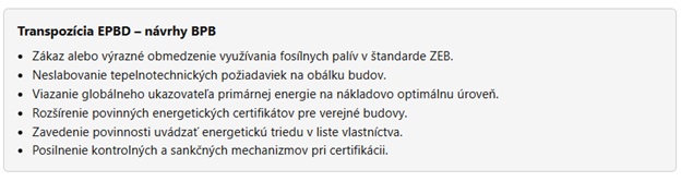 Rovnaký princíp platí aj pri komunikácii Budov pre budúcnosť. Platforma svoje návrhy prezentuje ako expertné odporúčania, hoci ide o presadzovanie konkrétnych priemyselných záujmov. Najambicióznejší výklad smernice EPBD je podávaný ako technická nevyhnutnosť, nie ako politická voľba s významnými ekonomickými dôsledkami pre domácnosti.