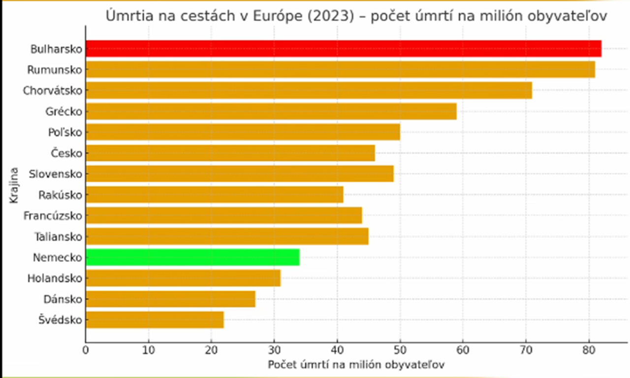 Graf: Úmrtia na cestách v Európe. / Foto: Screenshot Facebook video Milan Uhrík