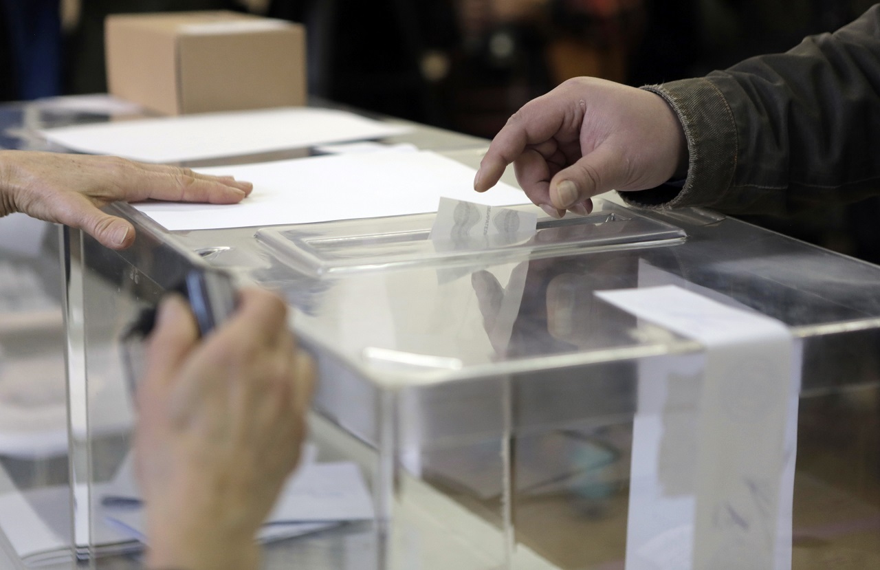 Na snímke volič vkladá obálku s hlasovacími lístkami do volebnej schránky počas predčasných parlamentných volieb v bulharskej Sofii