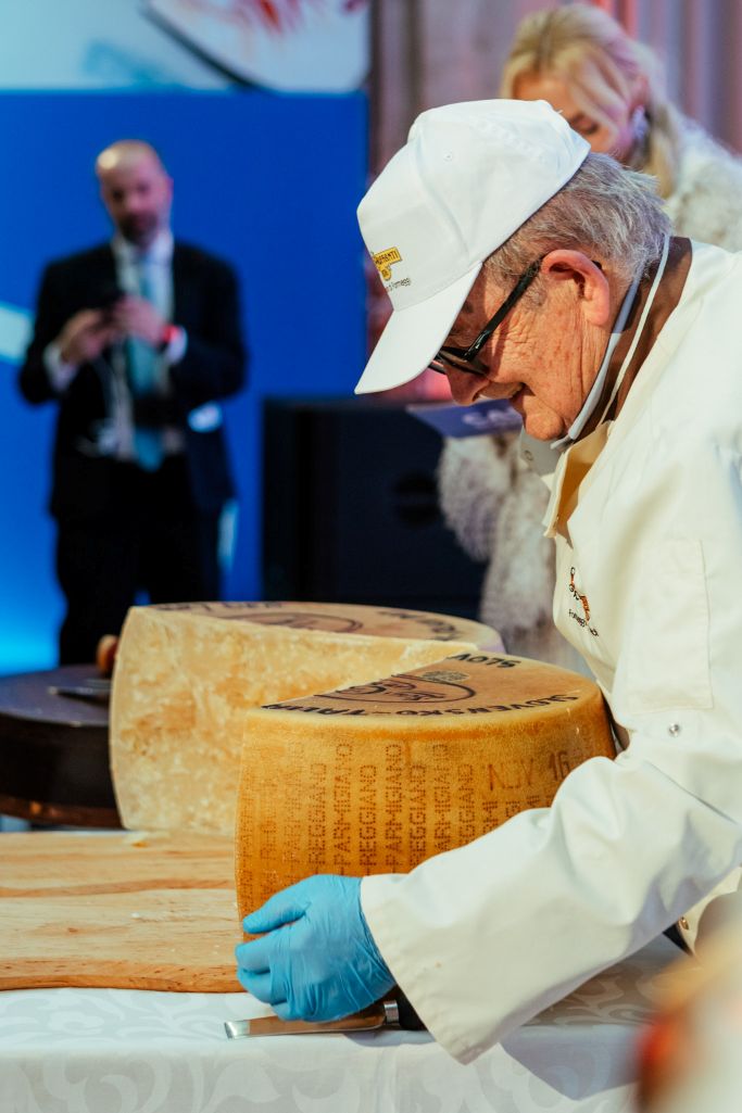 Krájanie pravého desaťročného parmezánu / Foto: Slovakia Travel