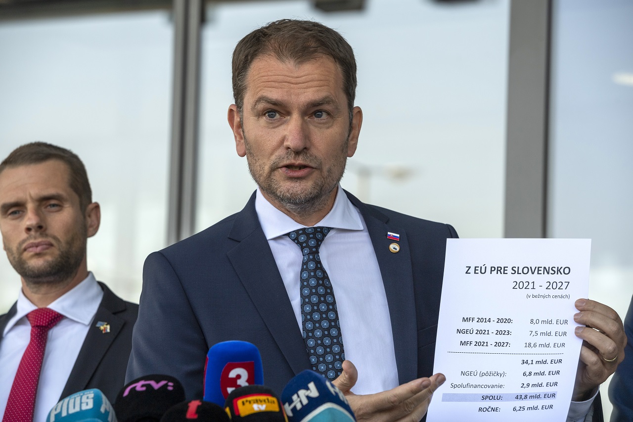 Na snímke zľava štátny tajomník Ministerstva zahraničných vecí a európskych záležitostí SR Martin Klus (SaS) a predseda vlády SR Igor Matovič (OĽaNO)