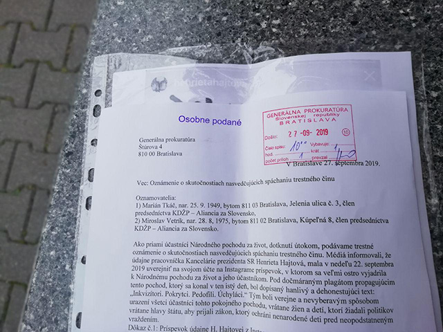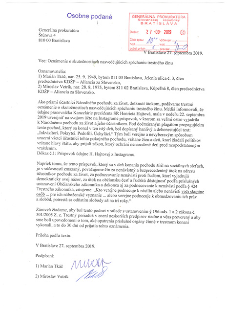 Henrieta Hajtová z tlačového oddelenia kancelárie prezidentky sa na Instagrame vyjadrila hanlivo o Národnom pochode za život, ktorého hlavnou prioritou je ochrana nenarodených detí pred bezbrehým vraždením. Podľa Čaputovej zamestnankyne sú organizátori, alebo možno aj účastníci pochodu – inkvizítori, pokrytci, pedofili a úchyláci.