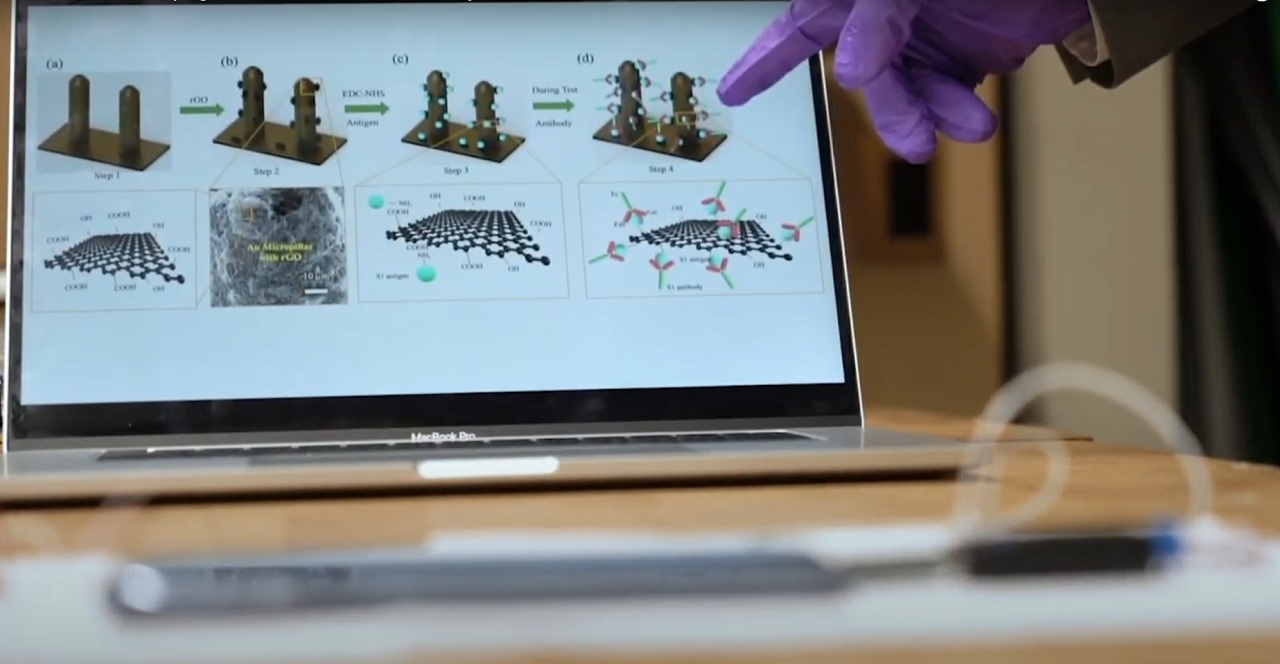 Pri vývoji ich testovacieho zariadenia bol „použitý najnovší pokrok v oblasti materiálov a výroby“, aby bolo možné rýchlo detekovať protilátky COVID-19, vysvetľuje profesor Rahul Panat. Špeciálny výrobný proces s názvom „Aerosol Jet Nanoparticle 3D Printing“ vytvorí špeciálnu štruktúru, ktorá načíta viac proteínov na detekciu a vedie k veľmi presným a rýchlym výsledkom.