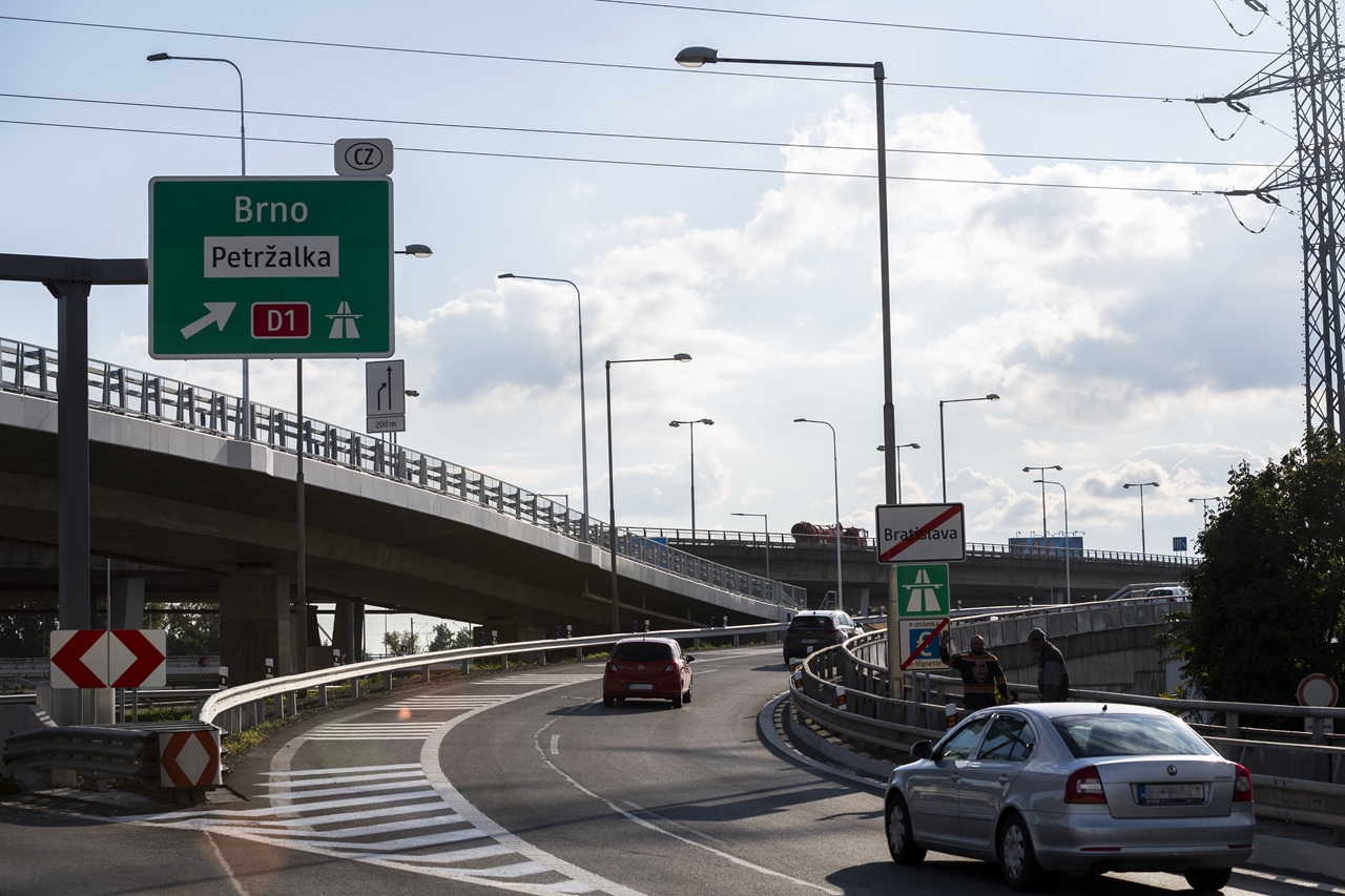Na snímke z októbra 2021 otvorený zrekonštruovaný nájazd z Bajkalskej ulice na Prístavný most v Bratislave / Foto: TASR-Jaroslav Novák
