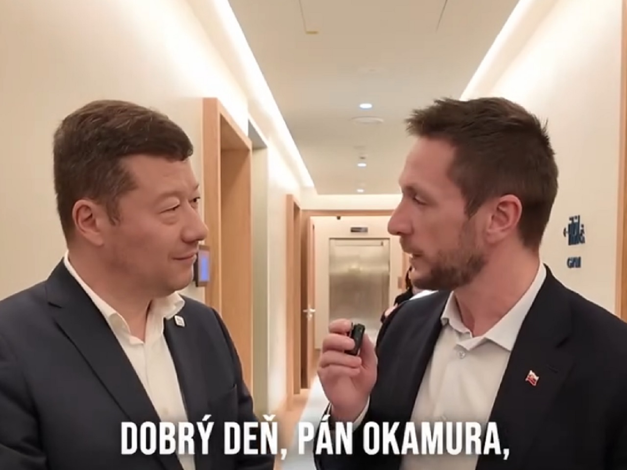 V rozhovore s lídrom hnutia SPD Tomiom Okamurom sa ho okrem iného opýtal, čo si myslí o tom, že „Vít Rakúšan chodí na slovenské protesty?“ Vít Rakúšan je predseda politického hnutia Starostovia a nezávislí (STAN) súčasnej vlády Petra Fialu, poznámka redaktora.