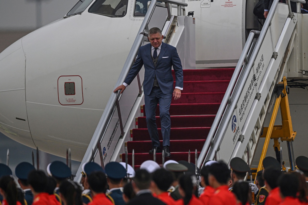 Slovenský premiér Robert Fico prichádza na medzinárodné letisko v Pekingu pred vojenskou prehliadkou pri príležitosti 80. výročia víťazstva nad Japonskom a konca druhej svetovej vojny v Pekingu v utorok 2. septembra 2025. / Foto: SITA Jade Gao/Pool Photo via AP