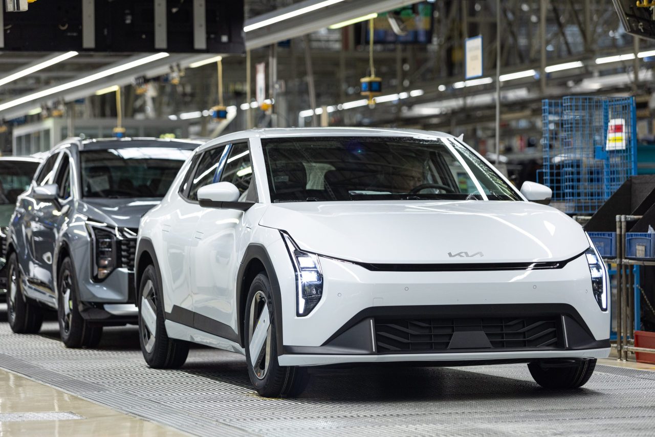 Na snímke nový automobil Kia EV4 počas oficiálneho spustenia výroby automobilu Kia EV4 v prietoroch Kia Slovakia / Foto: TASR-Daniel Stehlík