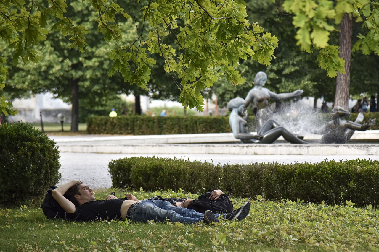 Na snímke ľudia oddychujú v Prezidentskej záhrade v Bratislave