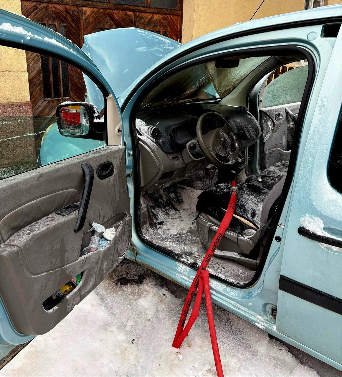 Hasiči zasahovali v utorok 13. januára 2026 pri požiari osobného motorového vozidla v blízkosti rodinného domu v obci Dolné Dubové v okrese Trnava / Foto: TASR-HaZZ v Trnave