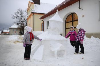 „Pri dokončovaní hasičskej zbrojnice sme boli totálne premočení, ale vydarilo sa nám to,“ dodáva. Na tvorbu sôch použili sneh, ktorý sa na ulici nahromadil po odhrabávaní ciest, ale aj ten, čo spadol zo strechy. Výhodou bolo, že to bol čerstvý sneh, z ktorého sa ľahšie modelovalo. „Sme ráno odpratávali sneh, nevedeli sme, čo s nudou, tak sme sa do toho pustili. Hlavný architekt je ale brat,“ dodáva 29-ročný Martin Oravec. Ten svojho brata naštartoval k stavbe koňa, ktorý je najmohutnejšou a zároveň najkrajšou stavbou. Vekový priemer stavbárov zo snehu bol 25 až 30 rokov.