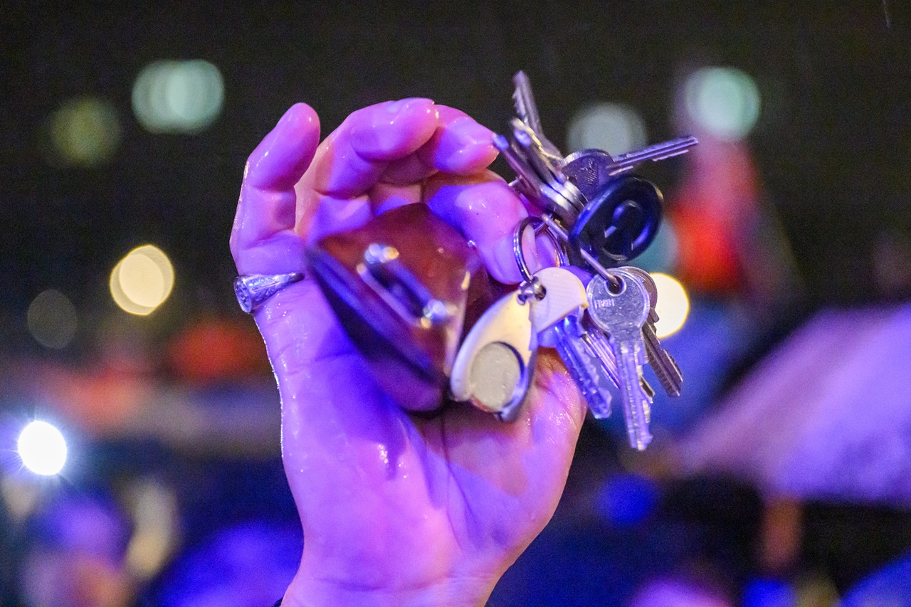 Na snímke jeden z účastníkov štrngá s kľúčami na zhromaždení s názvom Nevezmú nám november, ktoré zorganizovalo opozičné hnutie Progresívne Slovensko (PS) spolu s SaS, KDH a mimoparlamentnými Demokratmi pri príležitosti 36. výročia Nežnej revolúcie v Bratislave v pondelok 17. novembra 2025 / Foto: TASR-Jaroslav Novák