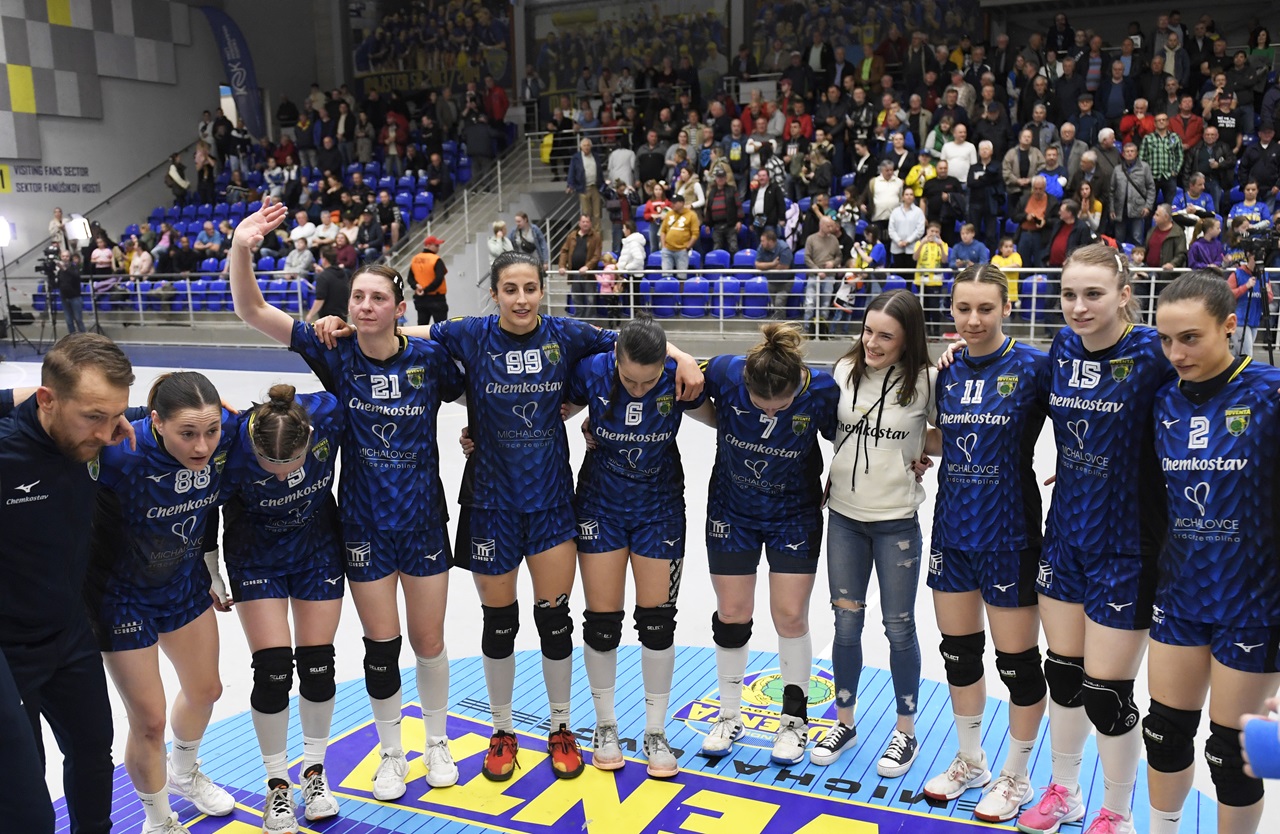 Na snímke hráčky MŠK Iuventa Michalovce po víťazstve nad Benficou Lisabon v prvom zápase semifinále Európskeho pohára EHF v hádzanej žien MŠK Iuventa Michalovce – Benfica Lisabon