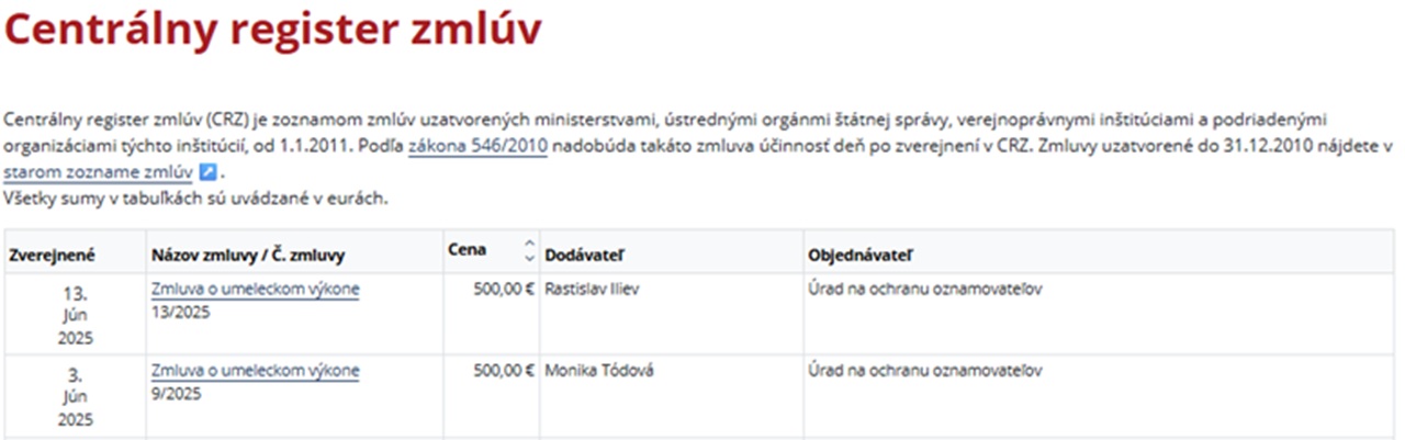 Centrálny register zmluv-2025120115md / Foto: screenshot