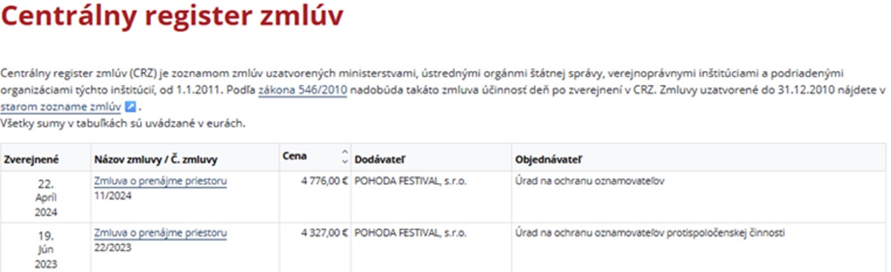 Aj výdavky úradu potvrdzujú jeho hodnotové ukotvenie: účasť na festivale POHODA v rokoch 2023 a 2024 stála úrad viac ako 9-tisíc eur za propagačné stánky (prenájom plochy 25 m²) na progresívnom „kultúrnom“ podujatí.