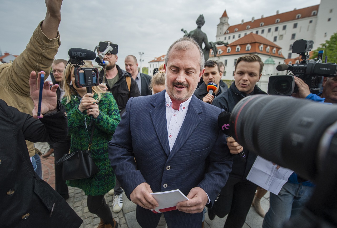Na snímke bývalý poslanec Národnej rady SR (NR SR) a predseda ĽSNS Marian Kotleba