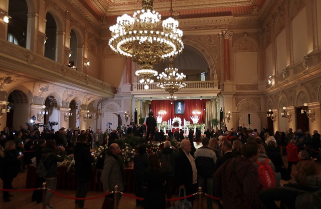 Okolo 8:00 sa prví ľudia na Žofíne začali lúčiť so spevákom Karlom Gottom. Podľa českých médií rad čakajúcich meria už takmer kilometer. Medzi prvými, ktorí sa prišli rozlúčiť s Karlom Gottom, je tiež hudobník Karel Vágner.