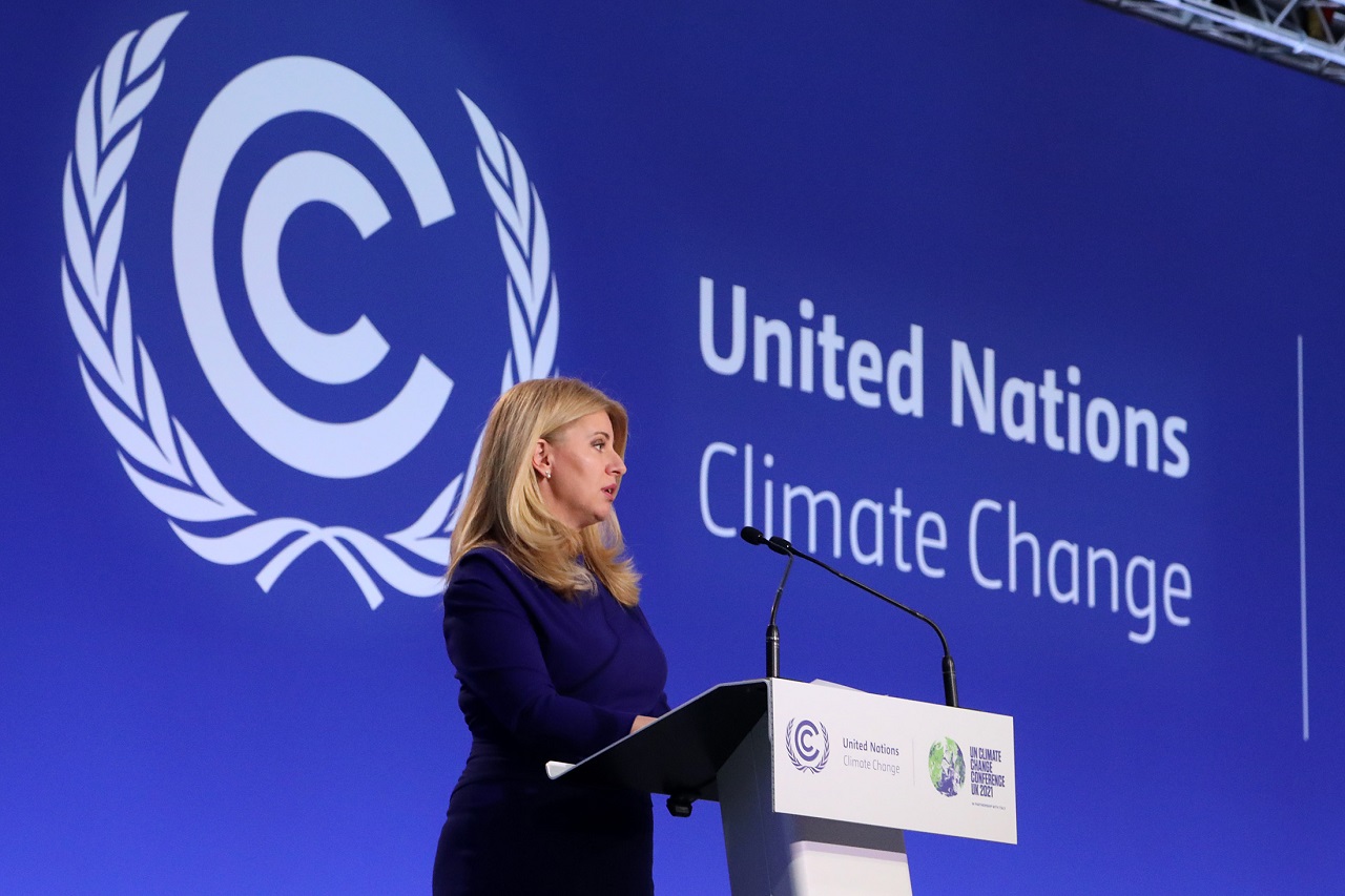 Na snímke prezidentka SR Zuzana Čaputová počas príhovoru na klimatickej konferencii COP26 v Glasgowe