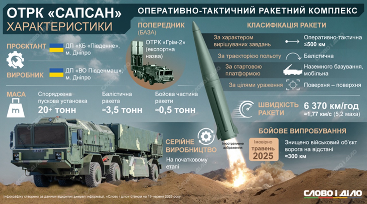 V materiáloch FSB, ktoré citovali viaceré ruské agentúry, sa uvádza, že vývoj balistickej rakety dlhého doletu Sapsan na Ukrajine financovalo Nemecko. A ukrajinský prezident Volodymyr Zelenskyj mal koncom mája oboznámiť nemeckého kancelára Friedricha Merza s projektovou dokumentáciou tohto raketového systému. Samotný Merz na spoločnej tlačovej konferencii so Zelenským po stretnutí povedal, že Nemecko podporí ukrajinský vývoj zbraní dlhého doletu. Zároveň bola podpísaná dohoda o financovaní tejto výroby. Krátko nato nemecké Ministerstvo obrany zverejnilo správu o podpise obrannej dohody. Uvádzalo sa v nej, že Nemecko bude „financovať výrobu zbraňových systémov dlhého doletu na Ukrajine“ ako súčasť záväzku investovať do ukrajinskej zbrojnej výroby. „V roku 2025 sa mal vyrobiť značný počet zbraňových systémov dlhého doletu. Prvé z nich mali byť nasadené už o niekoľko týždňov”. Nemecký generálmajor Christian Freuding uviedol, že Nemecko bude financovať výrobu ukrajinských rakiet dlhého doletu až v trojciferných počtoch.
