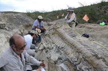 Chvost, ktorý objavili neďaleko malého mesta General Cepeda v pohraničnom štáte Coahuila, pravdepodobne predstavuje polovicu celkovej dĺžky pravekého plaza, dodal Aguilar. Bádatelia našli 50 kusov chvostových stavcov v neporušenom stave. Odkryv vzácneho nálezu uprostred púšte im trval 20 dní.
