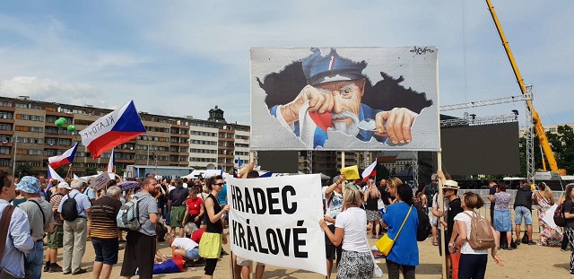 “Bureš, choď späť do Moskvy!” (Nápis na transparente)
