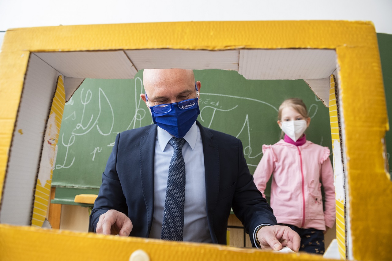 Na snímke minister školstva, vedy, výskumu a športu SR Branislav Gröhling (SaS) číta zo šlabikára počas otvorenia staromestských škôl