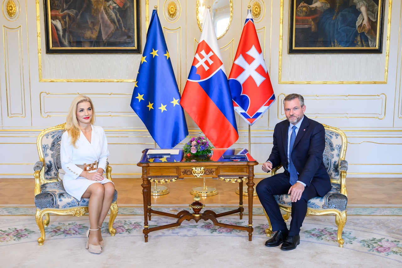 Na snímke zľava ministerka kultúry SR Martina Šimkovičová (nominantka SNS) a prezident SR Peter Pellegrini / Foto: TASR-Jaroslav Novák