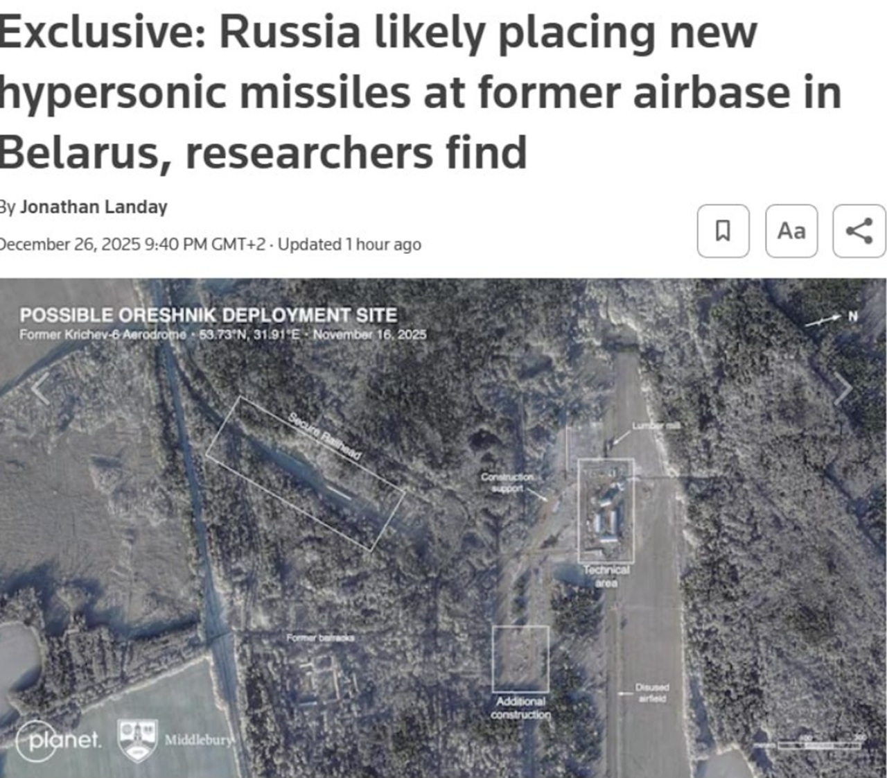 Moskva pravdepodobne umiestňuje nové hypersonické balistické rakety schopné niesť jadrové hlavice na bývalú leteckú základňu na východe Bieloruska, informuje agentúra…