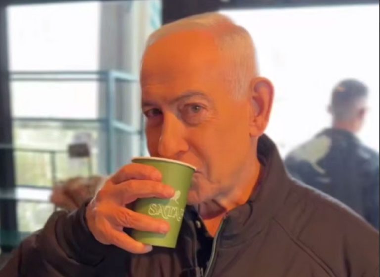 Na snímke Netanjahua/ Foto: Screenshot z videa z kaviarne