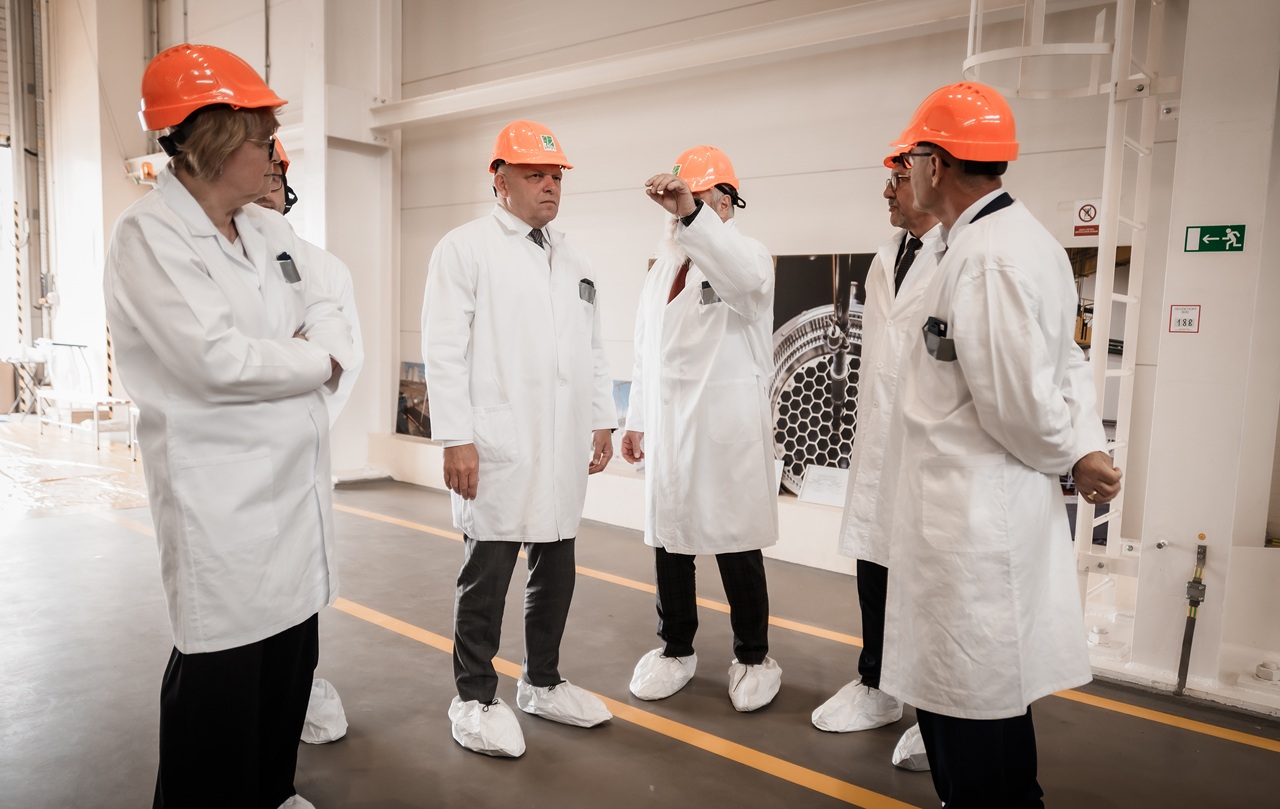 Na snímke predseda vlády SR Robert Fico (uprostred) počas prehliadky priestorov JAVYS v Jaslovských Bohuniciach v rámci odbornej konferencie spoločností JAVYS, newcleo a VUJE v oblasti vývoja a nasadenia pokročilého modulárneho reaktora IV. generácie / Foto: SITA-Úrad vlády SR