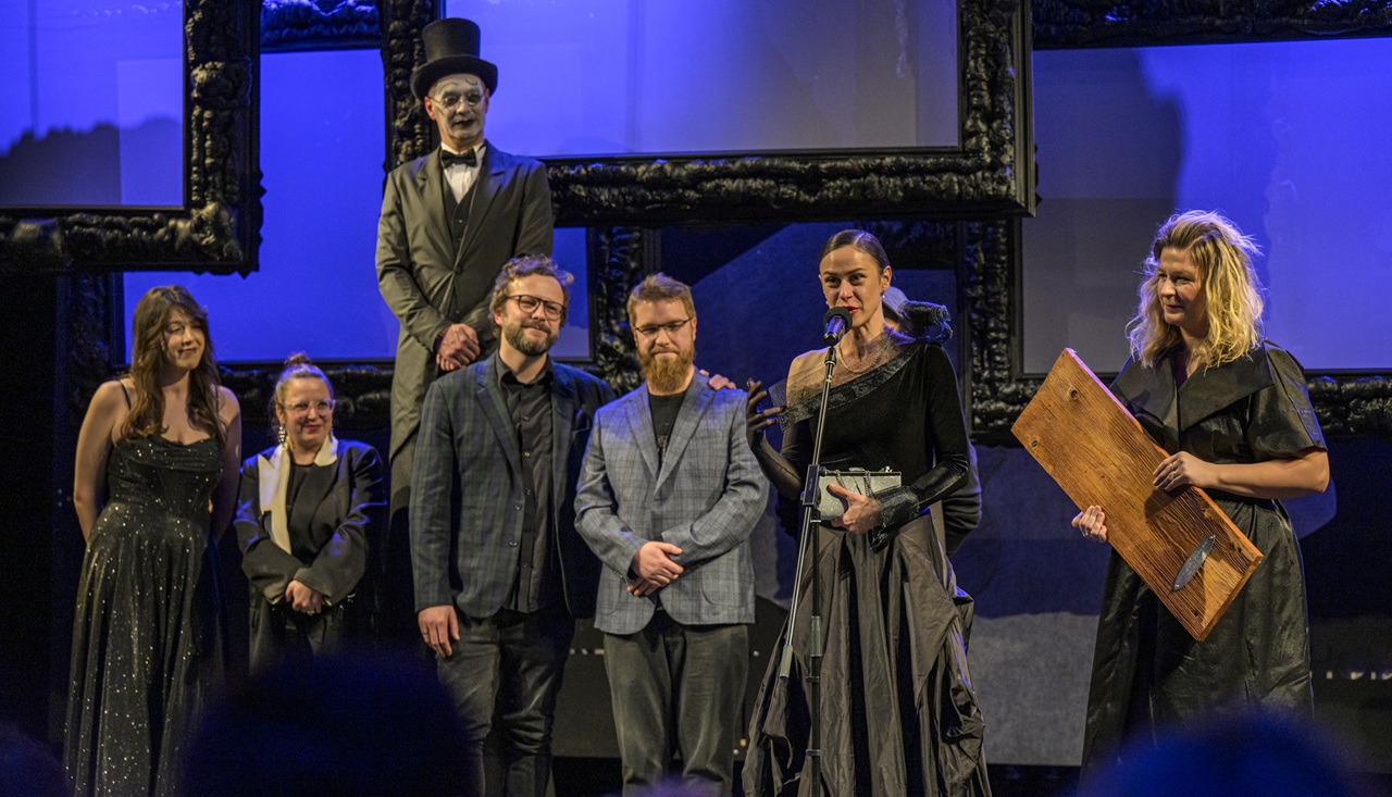 Na snímke ocenení za najlepšiu inscenáciu sezóny Outcast v réžii Júlie Rázusovej, Slzy Janka Borodáča, Prešov počas slávnostného ceremoniálu 28. ročníka divadelných ocenení sezóny – Dosky 2025 / Foto: TASR-Veronika MIhaliková