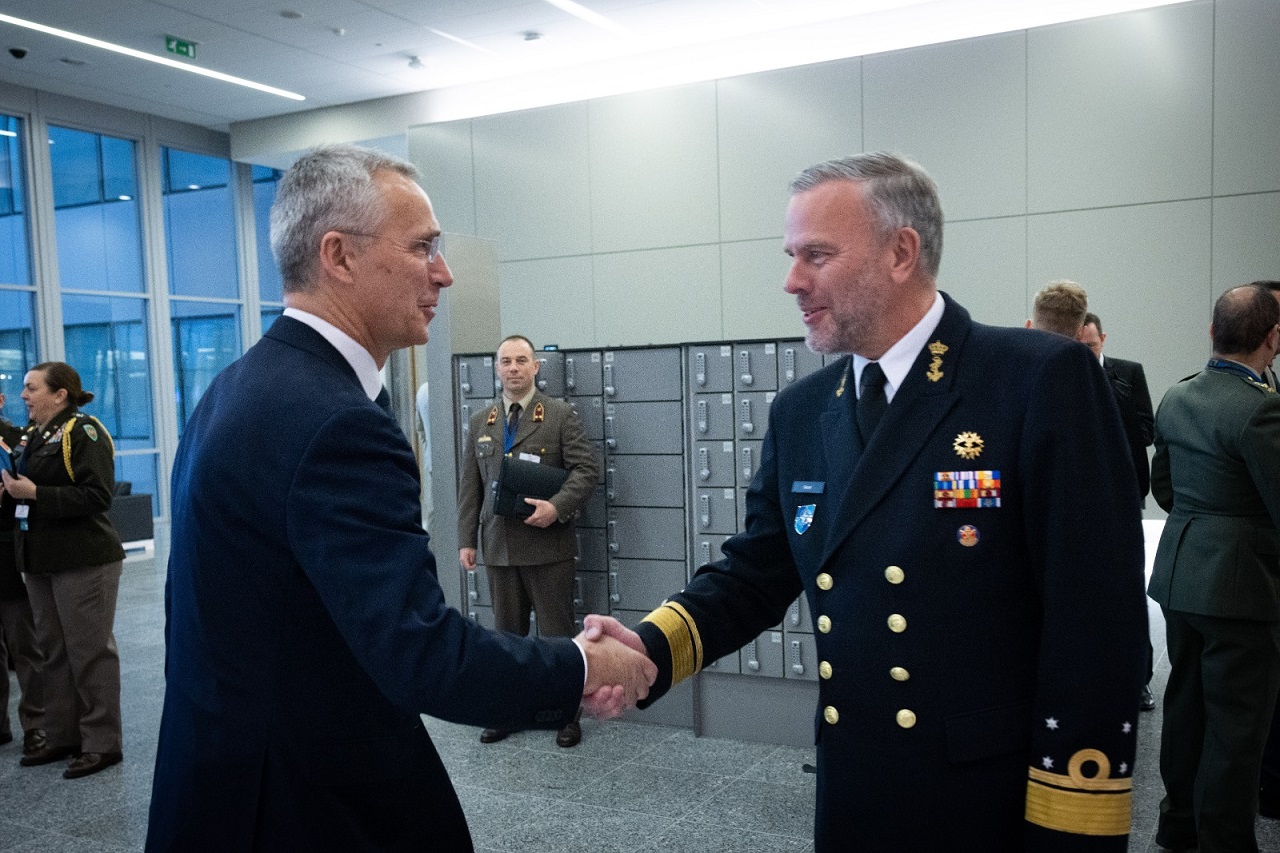 Na snímke vpravo éf vojenského výboru NATO Rob Bauer a generálny tajomník NATO Jens Stoltenberg