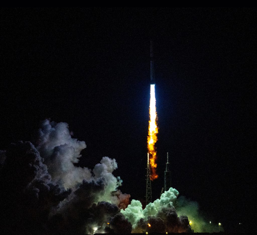 Start nosiče New Glenn, Autor: U.S. Space Force 45SW, Senior Airman Samuel Becker. Povšimněte si “plynové” barvy toho plamene.