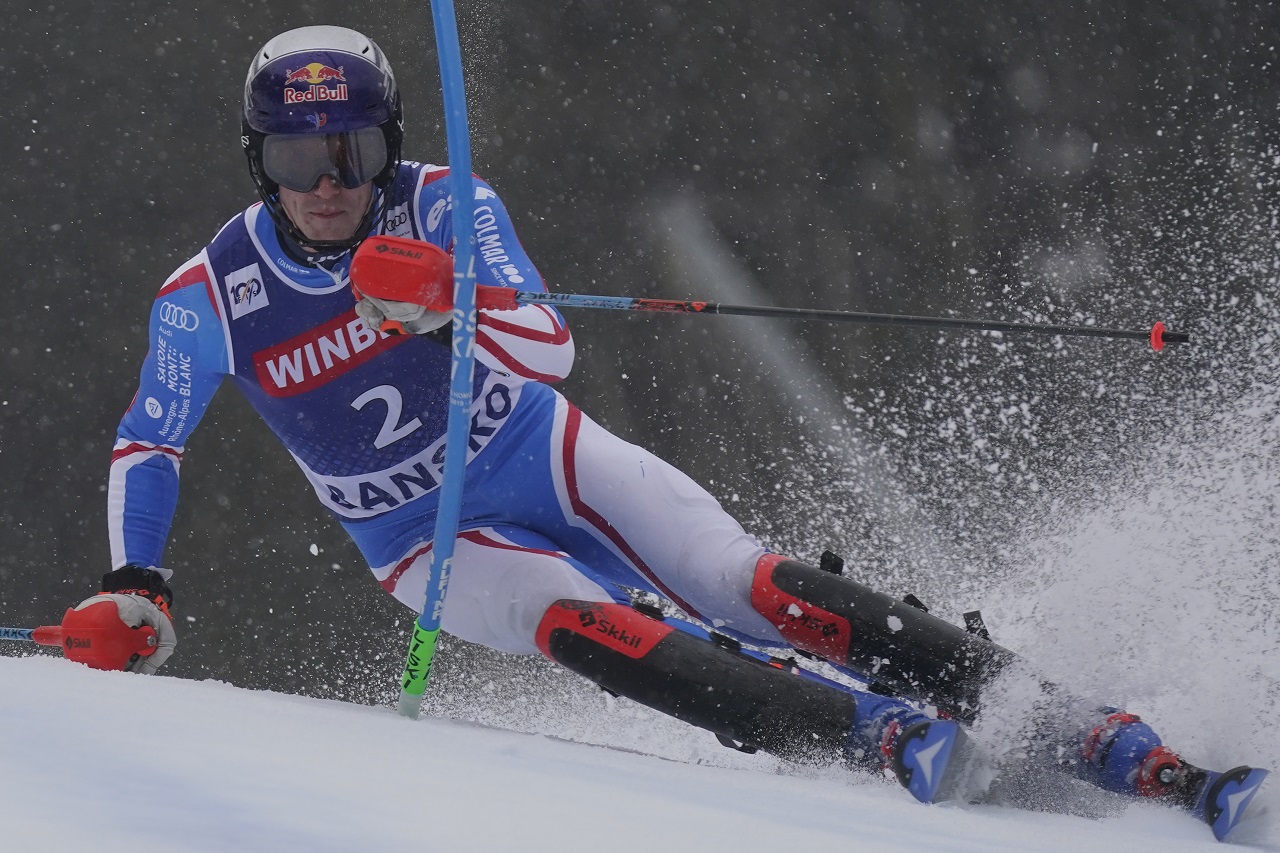 Francúzsky lyžiar Clement Noel na trati v 1. kole slalomu Svetového pohára