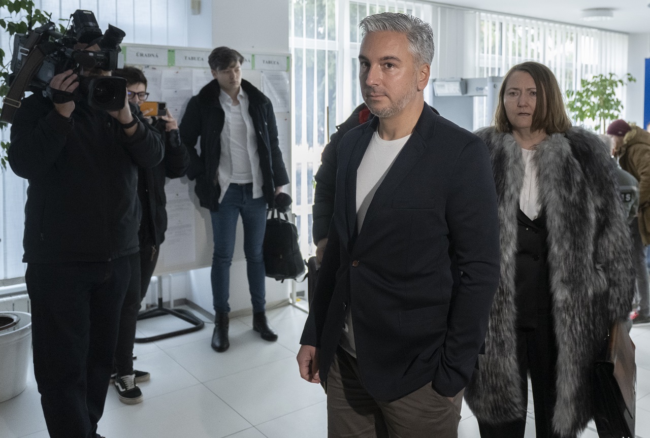 Na snímke v popredí predseda Košického samosprávneho kraja (KSK) Rastislav T. a vpravo v pozadí advokátka Iveta Rajtáková prichádzajú na pojednávanie v budove Najvyššieho súdu SR 27. februára 2023 v Bratislave.