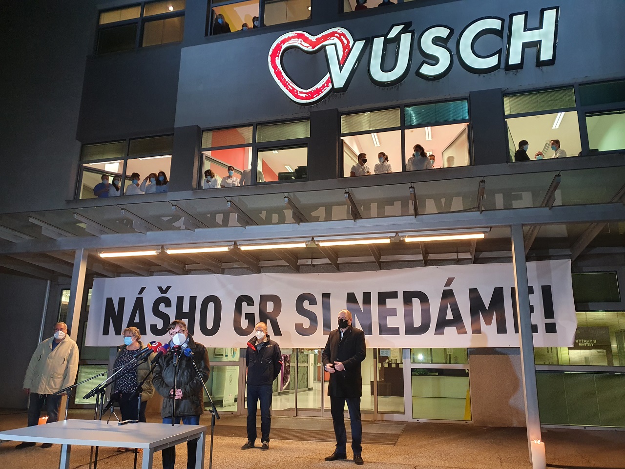 Vyjadriť podporu pred VÚSCH prišli vo štvrtok večer aj emeritný prednosta Kliniky anestéziológie a intenzívnej medicíny VÚSCH Pavol Török či zástupkyňa odborárskej organizácie VÚSCH Bibiána Kafková. Na priečelí budovy boli umiestnené aj transparenty s nápisom “Nášho GR (generálneho riaditeľa) si nedáme!”.