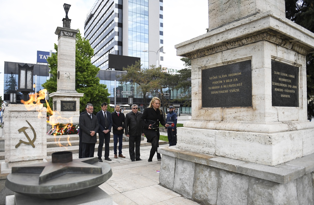 Na snímke pietny akt kladenia vencov pri príležitosti Dňa víťazstva nad fašizmom na Námestí osloboditeľov v Košiciach 7. mája 2019 / Foto: TASR-František Iván