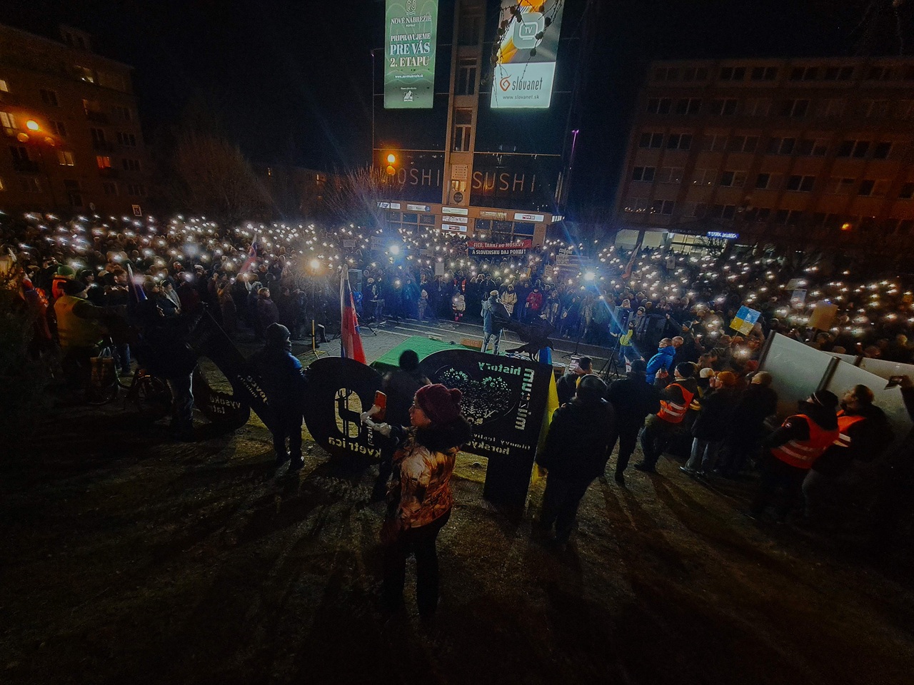 Na snímke účastníci so svetielkami počas protestného zhromaždenia Slovensko je Európa! organizovaného iniciatívami Mier Ukrajine a Poprad za Demokraciu na Námestí sv. Egídia v Poprade 24. január 2025 / Foto: SITA/Mária Frisová