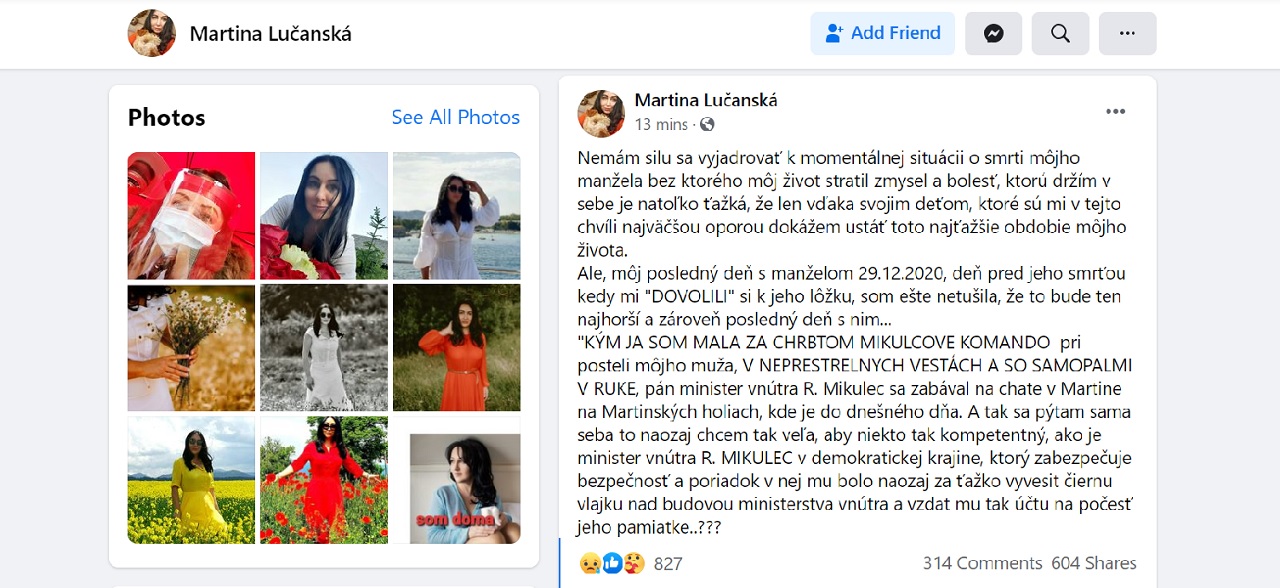 Pridáva sa aj Martina Lučanská, ktorá by aspoň takto chcela ešte prejaviť úctu svojmu zosnulému manželovi, o ktorom sa hovorí, že pozatváral skutočnú mafiu 90.rokov. S bolesťou napísala riadky na sociálnej sieti, ktoré venovala ministrovi vnútra Romanovi Mikulcovi: