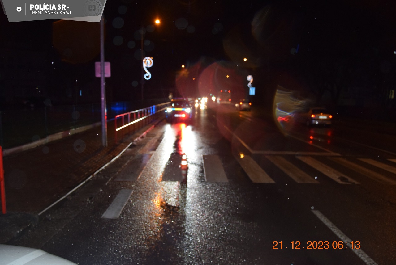 Doposiaľ neznáme vozidlo jazdilo po ulici Obrancov mieru v smere na Trenčín. Na priechode pre chodcov zachytilo chodkyňu, ktorá následne spadla na vozovku a utrpela zranenia. Dezorientovanú ženu našla po nehode iná osoba sediacu na okraji priechodu na vozovke. Momentálne je hospitalizovaná v nemocnici.