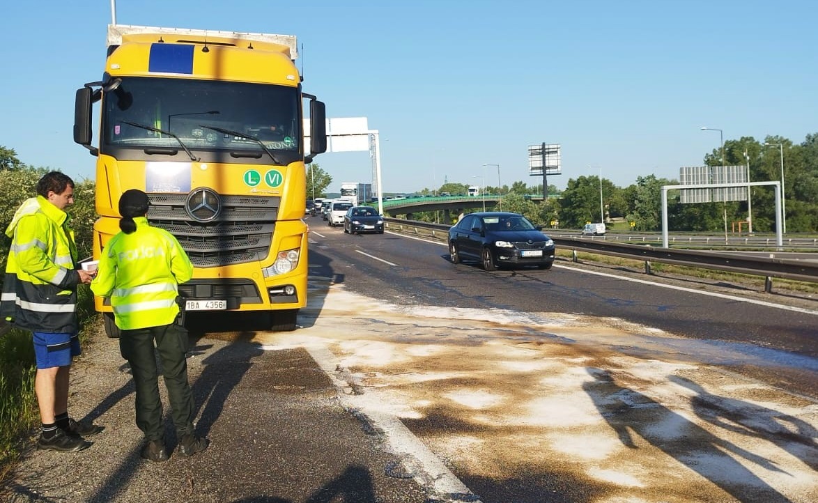 Bratislavskí dopravní policajti asistujú pri udalosti od ranných hodín. “Z doposiaľ presne nezistených príčin došlo k technickej poruche na nákladnom motorovom vozidle, v dôsledku čoho začali unikať z jeho spodnej časti prevádzkové kvapaliny. Z dôvodu ich odstraňovania je premávka v tomto úseku zúžená do jedného jazdného pruhu,” priblížili.