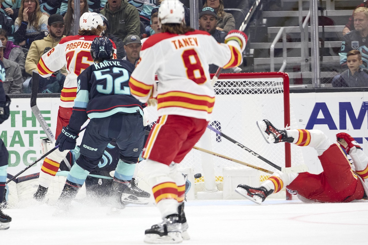 Pospíšila povolalo vedenie Flames z farmárskeho tímu Calgary Wranglers (AHL) v stredu a tréner Ryan Huska ho pri debute v NHL na ľade Seattlu postavil na krídlo tretieho útoku s centrom a kapitánom tímu Mikaelom Backlundom a Blakeom Colemanom. Hneď vo svojom prvom striedaní ukázal 23-ročný slovenský útočník svoj potenciál a kvalitným forčekingom poriadne znepríjemnil rozohrávku Kraken v obrannom pásme.