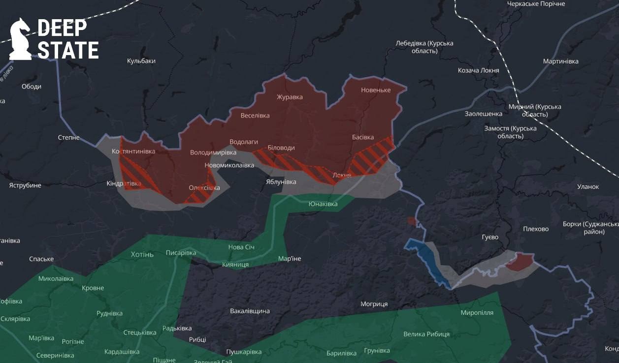„Hlavným zdrojom nepriateľa je prevaha pechoty, ktorú sústreďuje po vytlačení jednotiek SSU na Kurščine. Palebnú podporu zabezpečujú rôzne drony, avšak technika sa používa zriedka a vsádza sa na pechotu a bezpilotné lietadlá, ktoré útočia na logistiku a pozície,“ uvádza DeepState.