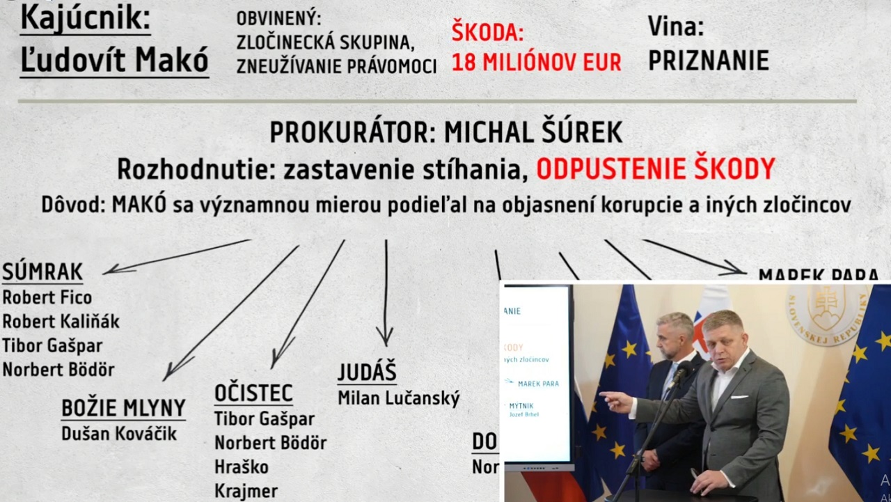 Makó podľa premiéra vypovedal v kauze Súmrak, kde nevznikla škoda a obvinenie bolo nakoniec zrušené. Ďalej vypovedal v kauze Božie mlyny proti bývalému špeciálnemu prokurátorovi Dušanovi Kováčikovi, v ktorého prípade dovolací súd zrušil právoplatné odsúdenie a vec je znovu na začiatku. „A je nula. To znamená, žiadna korupcia odhalená,“ skonštatoval Fico. Pokiaľ ide o kauzu Očistec, podľa premiéra „nikto nevie, čo s tým bude“, pričom škoda v tejto kauze by mala predstavovať približne 80-tisíc eur. V kauze Judáš obvinený Milan Lučanský zomrel a v kauze Dobytkár je podľa Fica škoda nulová. Bývalý šéf Slovenskej informačnej služby Vladimír Pčolinský bol zase vo veci korupčných skutkov oslobodený a v kauze Mýtnik podľa Fica tiež škoda nevznikla.